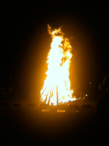 (A bonfire after one of our late night sessions earlier this week.)